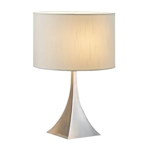 Enjoy a sleek, modern table lamp that dazzles in any décor. The Luxor lamp is designed with a pyramid-shaped steel base and a white silk-like fabric drum shade. A three-way touch sensor switch powers the lamp, which requires a single bulb of up to 100 watts. The shade is 9 inches high with a 13-1/2-inch diameter. (more...)